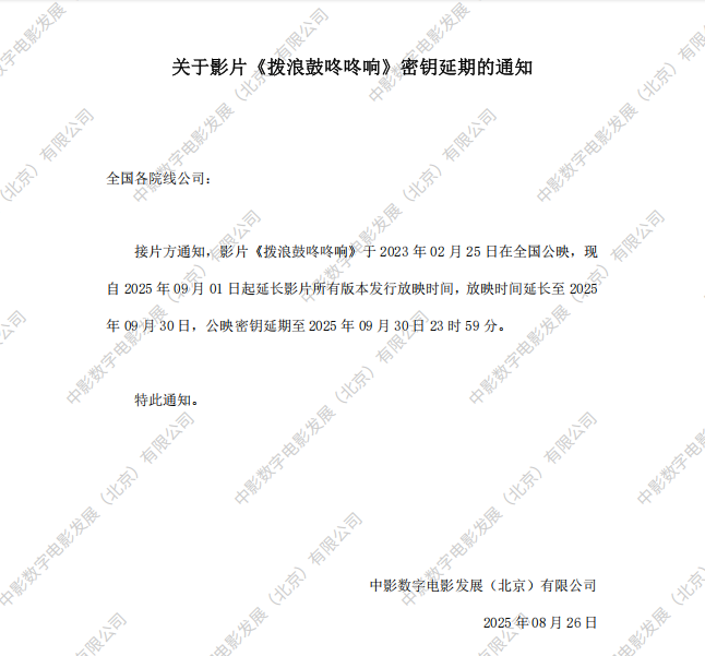 《拨浪鼓咚咚响》第三十二次密钥延期的通知