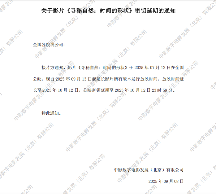 关于影片《寻秘自然:时间的形状》3次密钥延期的通知