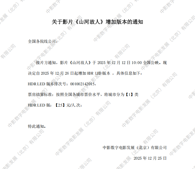 发行通知 » 《山河故人》增加版本的通知