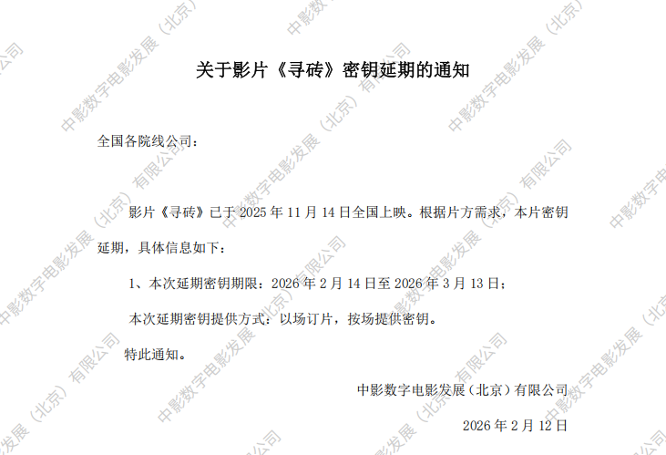 《寻砖》第二次密钥延期的通知