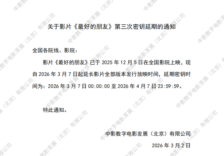 《最好的朋友》第二次密钥延期的通知
