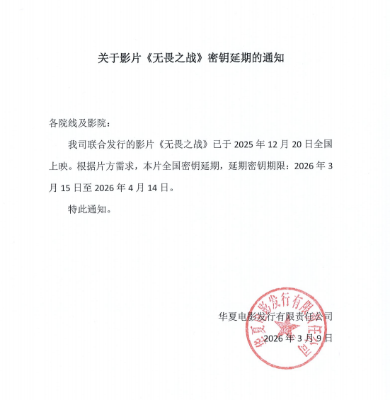 《无畏之战》改档的通知
